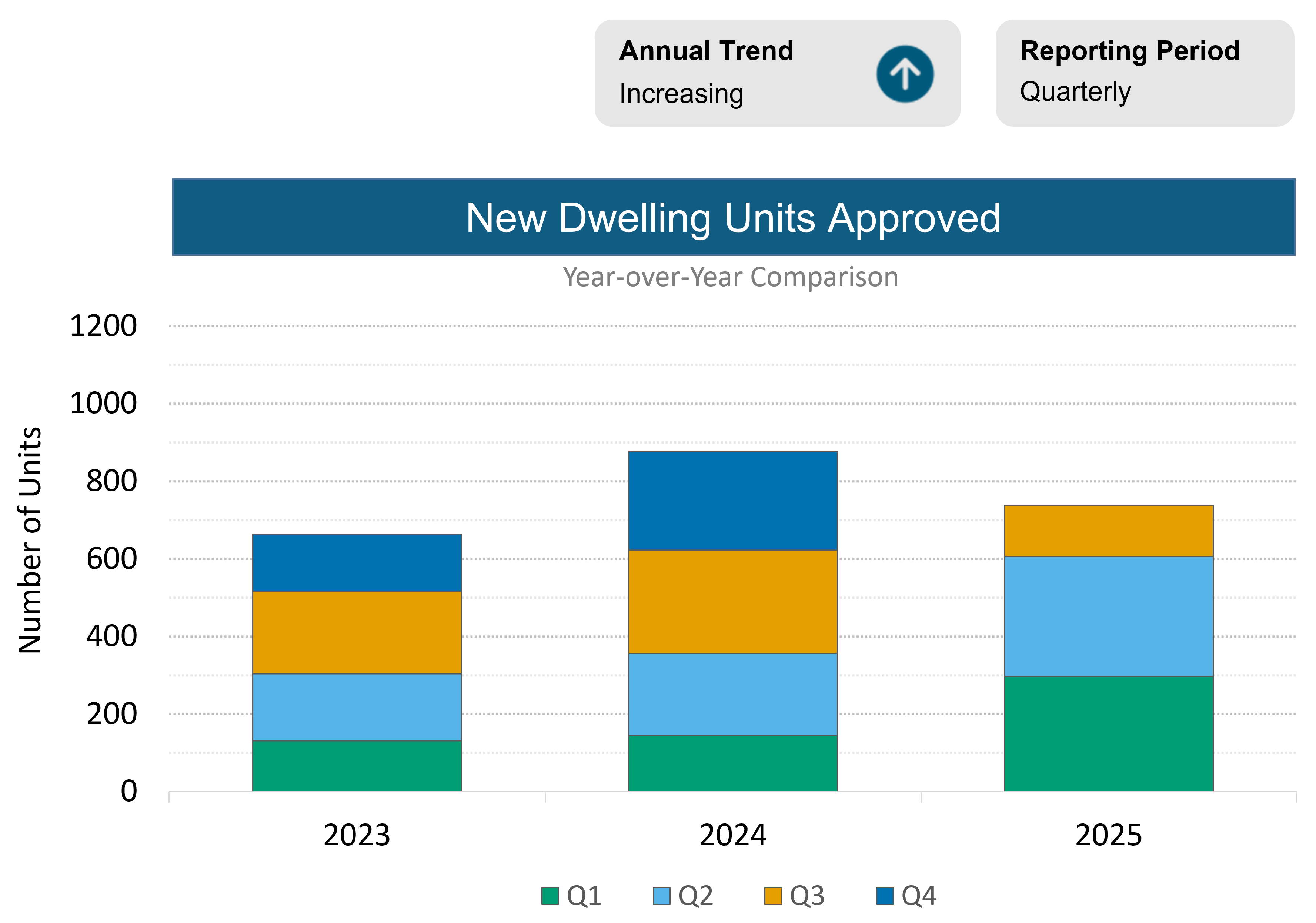 This data shows the total number of new dwelling units approved.