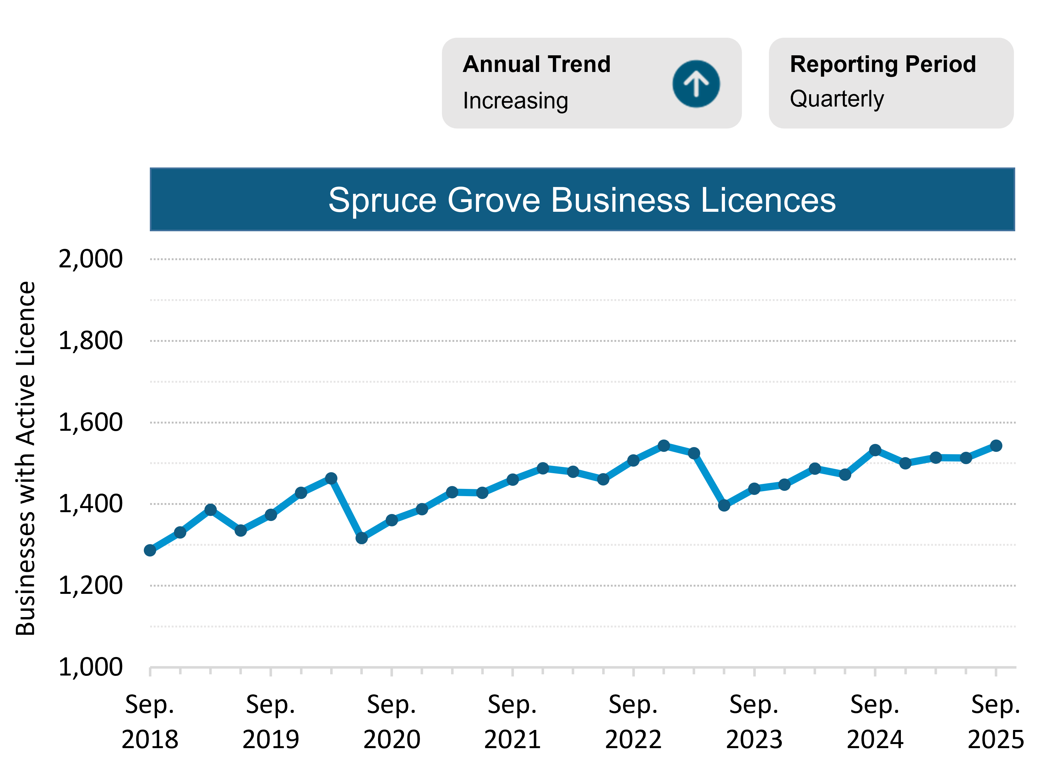The City of Spruce Grove’s Reporting Dashboard uses key data to monitor and share important information about our community and the City’s programs and services. It tracks data over time, telling us what we're doing well and where more focus and attention may be needed. The dashboard groups data sets into themes and identifies targets and/or trends for each data set.