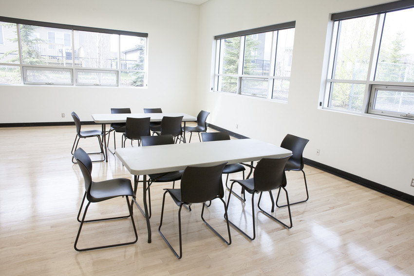 Multipurpose room designed for community programming, meeting space and private rentals. It is a large, bright room perfect for activities such as active play, spacious meetings, and coaching clinics. This room also provides an opportunity to open to the Jen-Col multipurpose room, allowing a double room booking for AGM's and larger gatherings. Amenities include south- and west-facing windows, sink, counter, cabinets, and close access to Fuhr Sports Park fields. Wi-fi is available. A/V equipment is available, please bring your own laptop. |